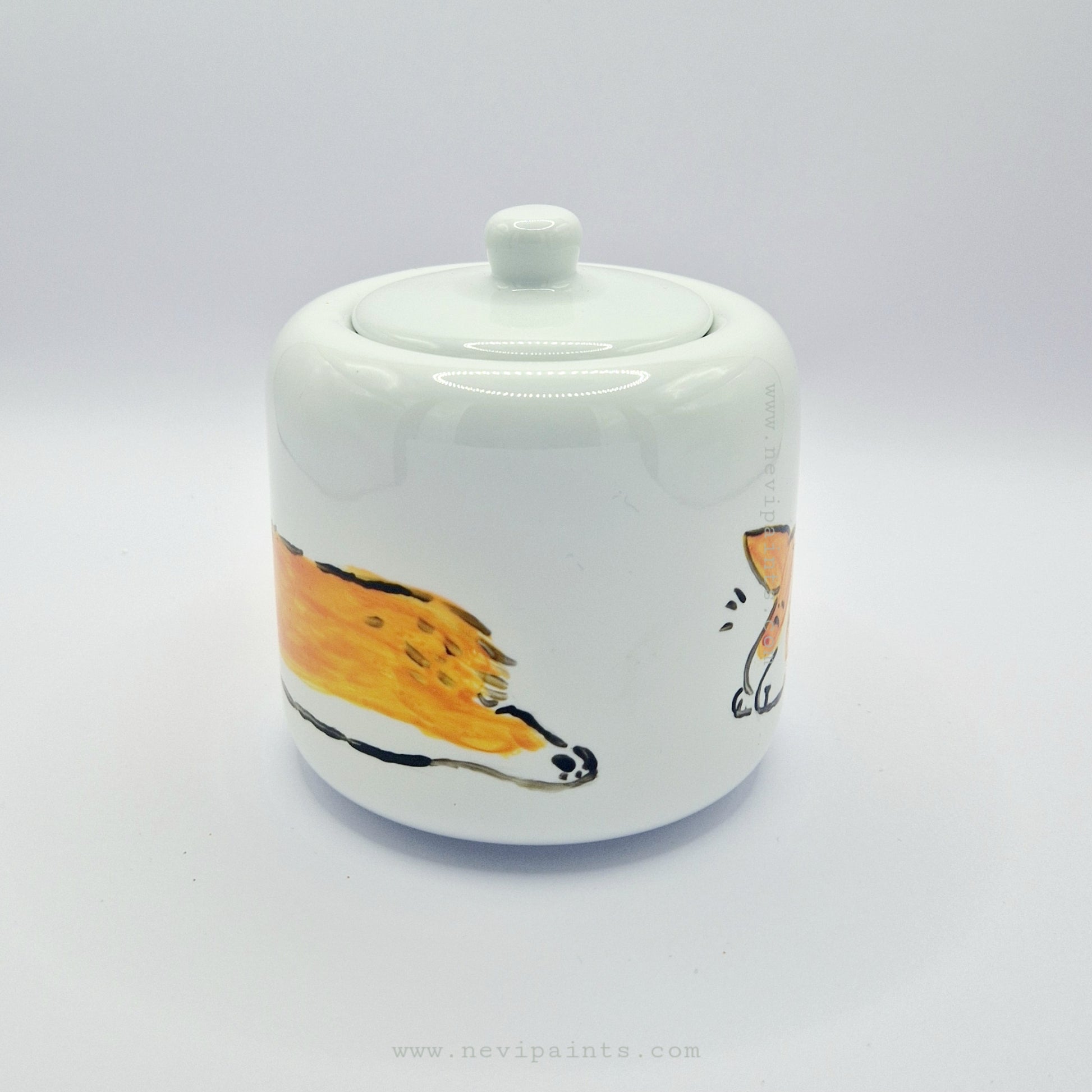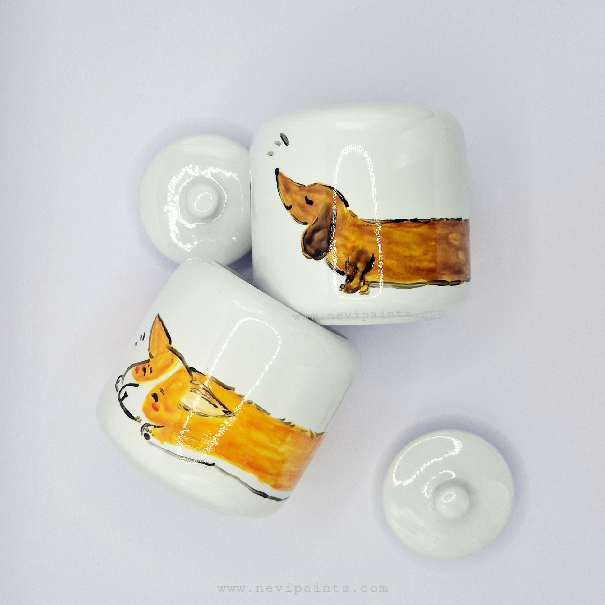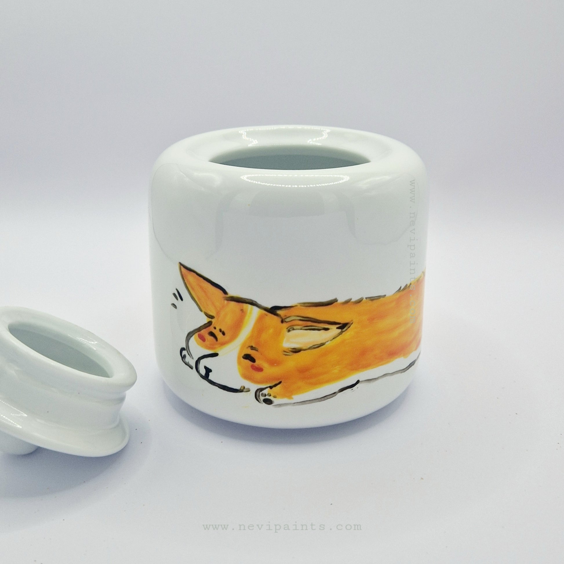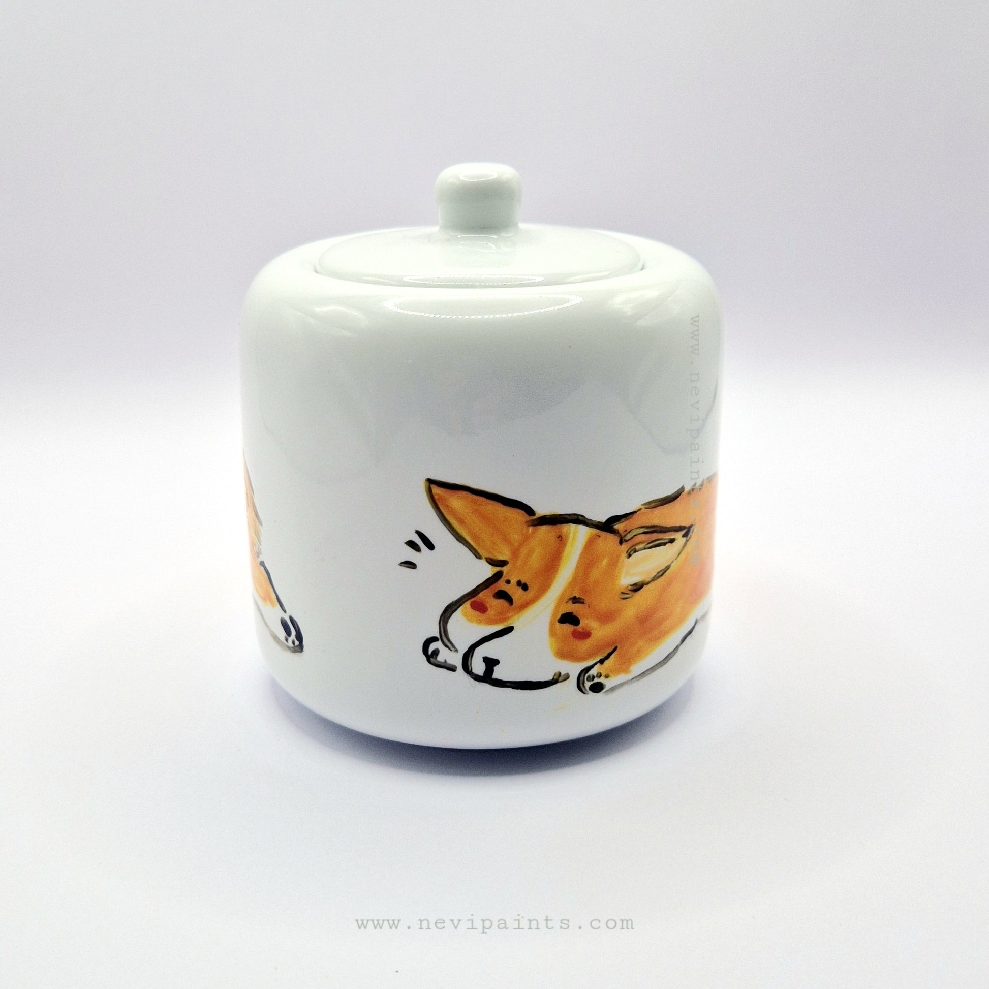 Cute Corgi Hand Painted on ceramic sugar pot, then heat cured to make it microwave and dishwasher-safe. If hand-washed, I recommend not using abrasive materials to wash this special piece.
