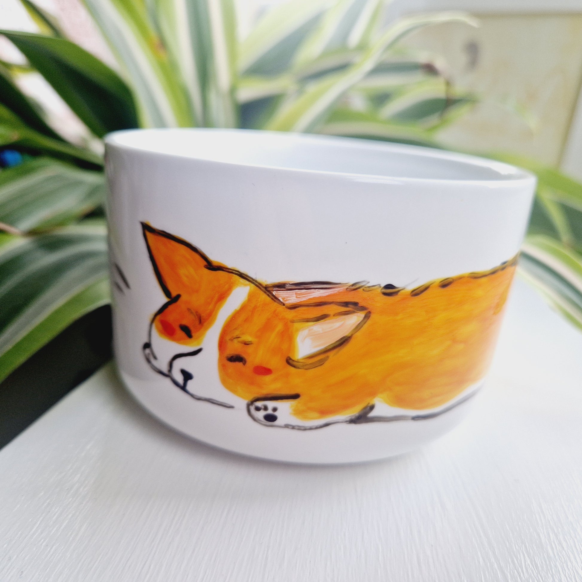 Cute Little Corgi Hand Painted on ceramic snack bowl, then heat cured to make it microwave and dishwasher-safe. If hand-washed, I recommend not using abrasive materials to wash this special piece.