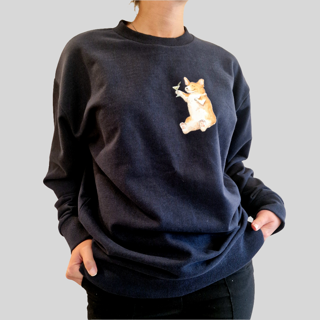 Soft and cute organic cotton sweatshirt featuring my "Corgi and Martini" design