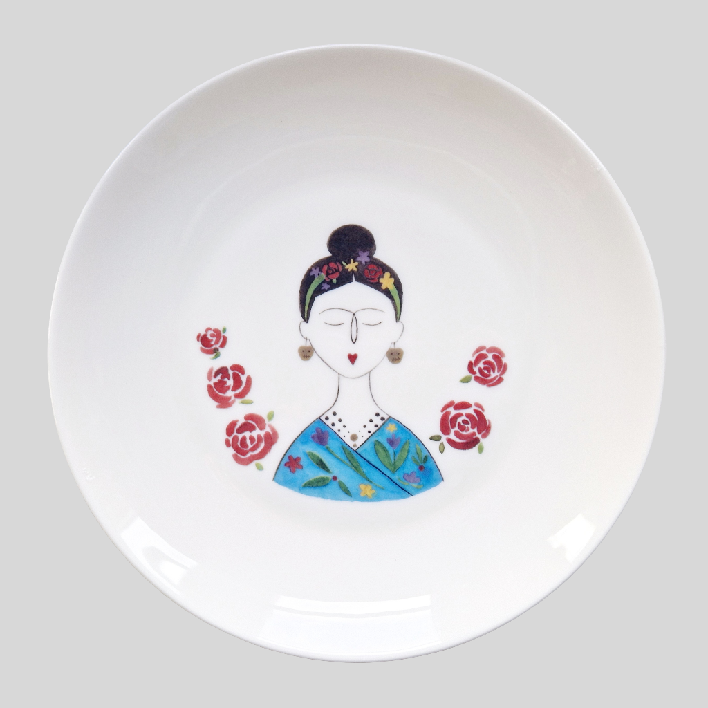 Fashioned out of durable, lightweight bone china and featuring the iconic hand-drawn Frida print by Nevi Paints, these elegant dinnerware pieces will freshen any kitchen or dining space.
