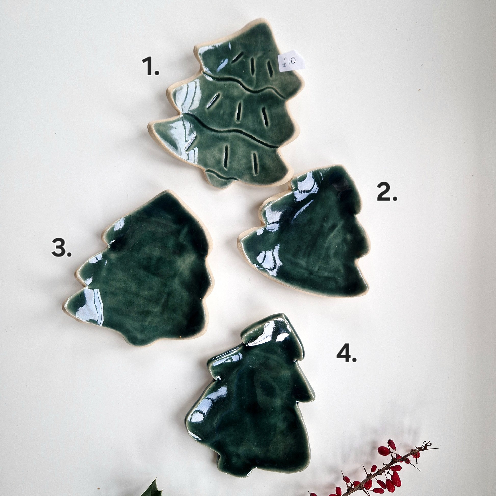 Ceramic ChristmasTree Shaped Spoon Rest / Tea Bag holder. Each of them is unique and made by hand.