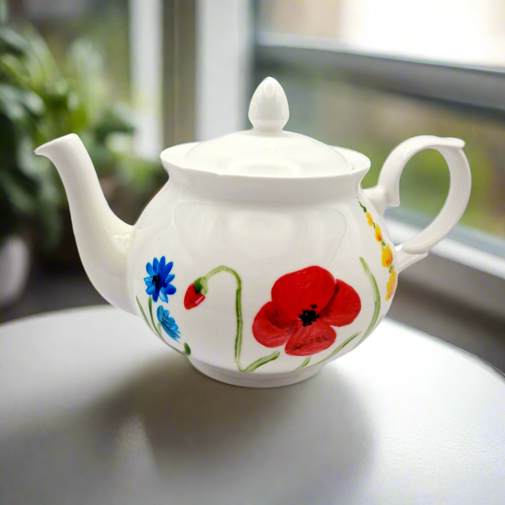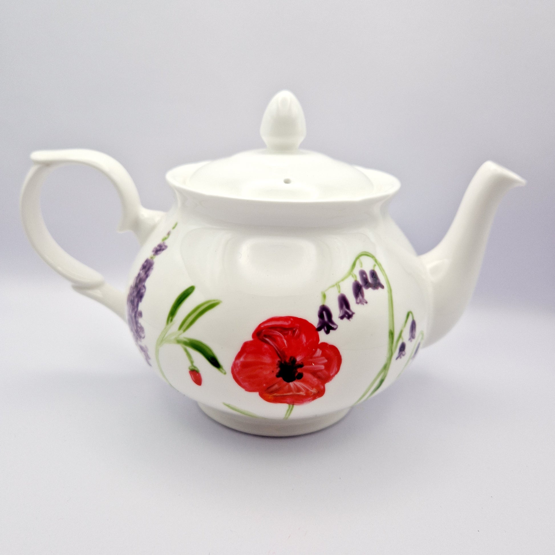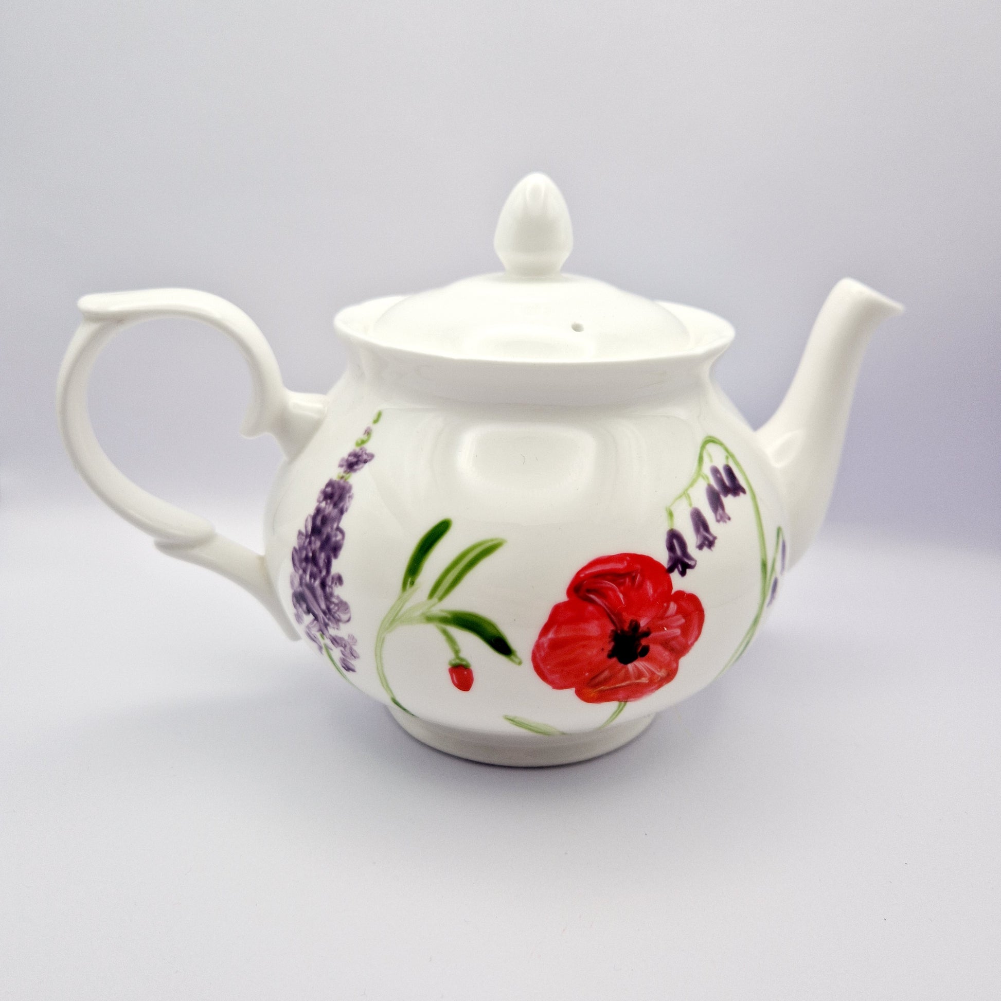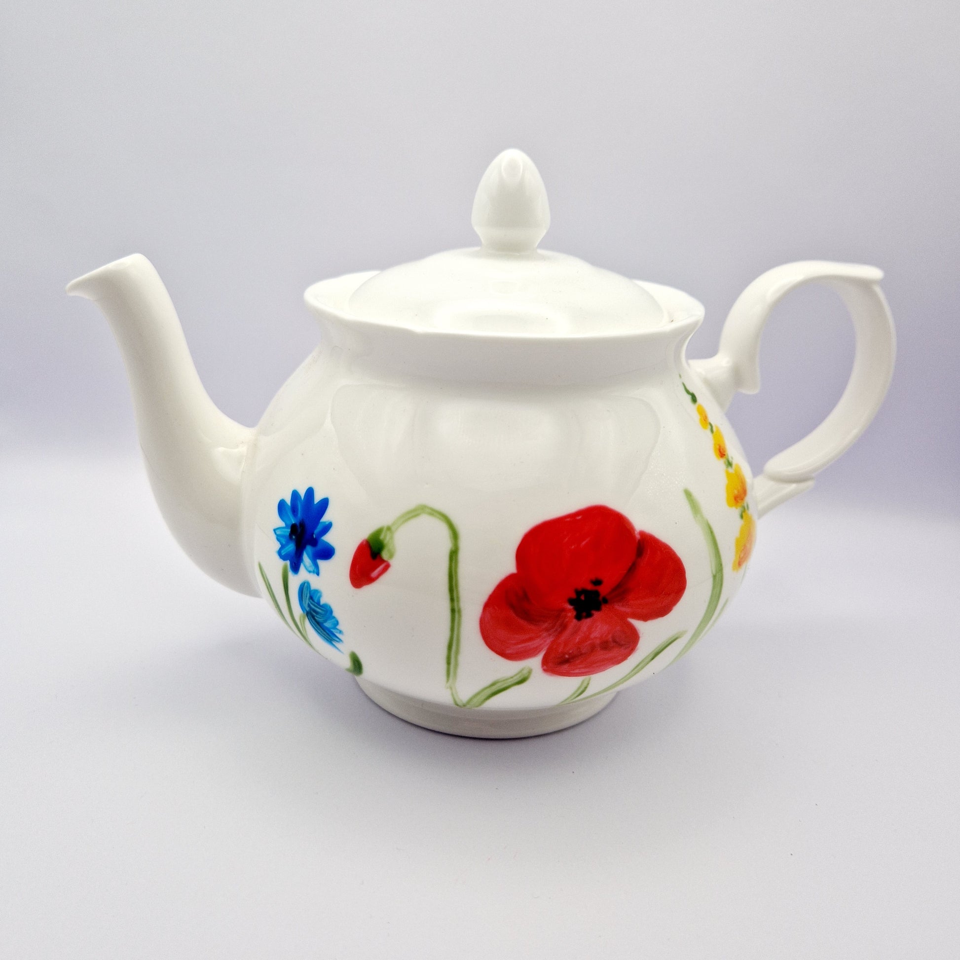 Cute Flowers Hand Painted on porcelain pot, then heat cured to make it microwave and dishwasher-safe. If hand-washed, I recommend not using abrasive materials to wash this special piece.