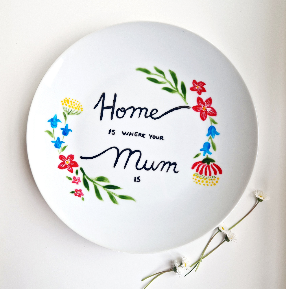 Hand drawn on this shiny porcelain plate, then heat cured to make it microwave and dishwasher-safe. If hand-washed, I recommend not using abrasive materials to wash this special piece.