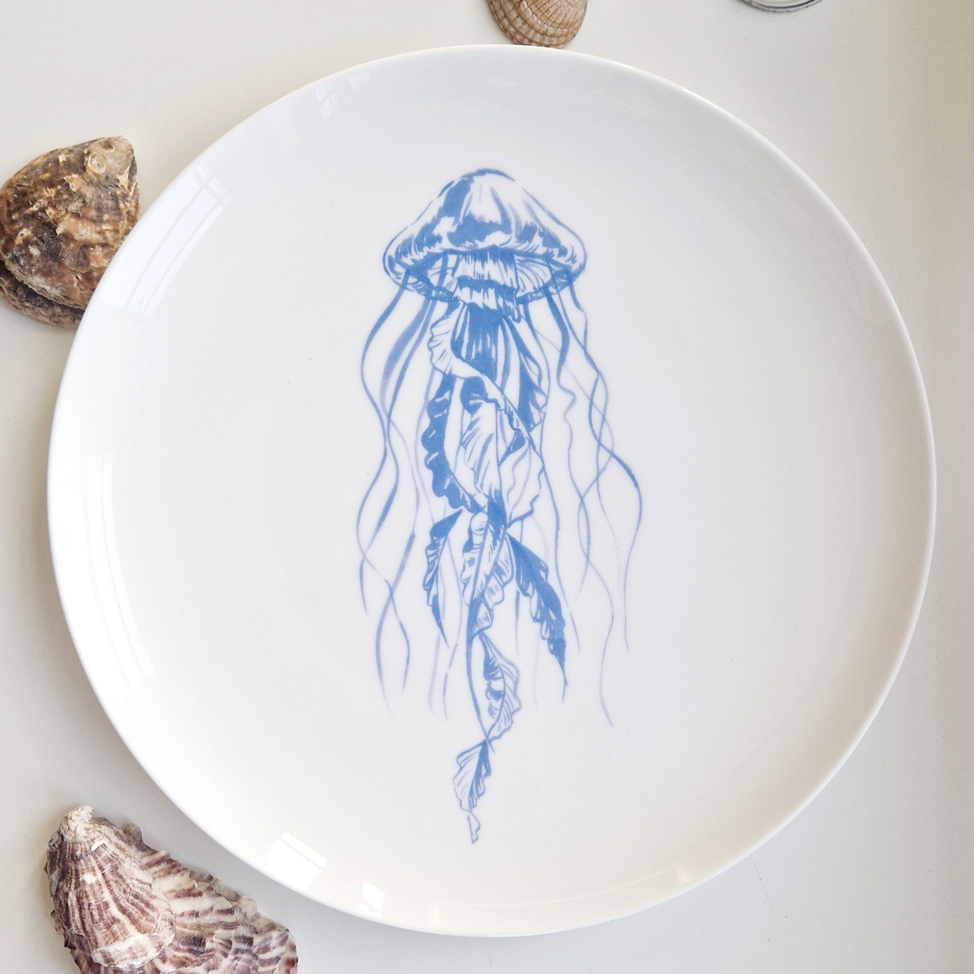 Fashioned out of durable, lightweight bone china and featuring hand-drawn fish, squid and octopus prints by Nevi Paints, these elegant dinnerware pieces will freshen any kitchen or dining space.