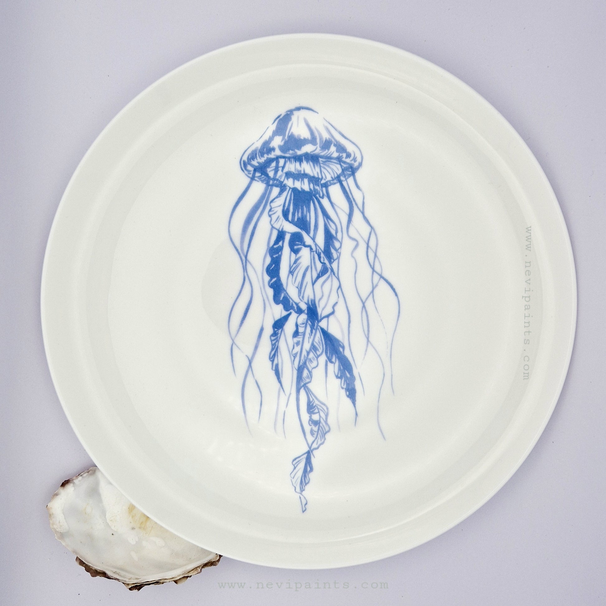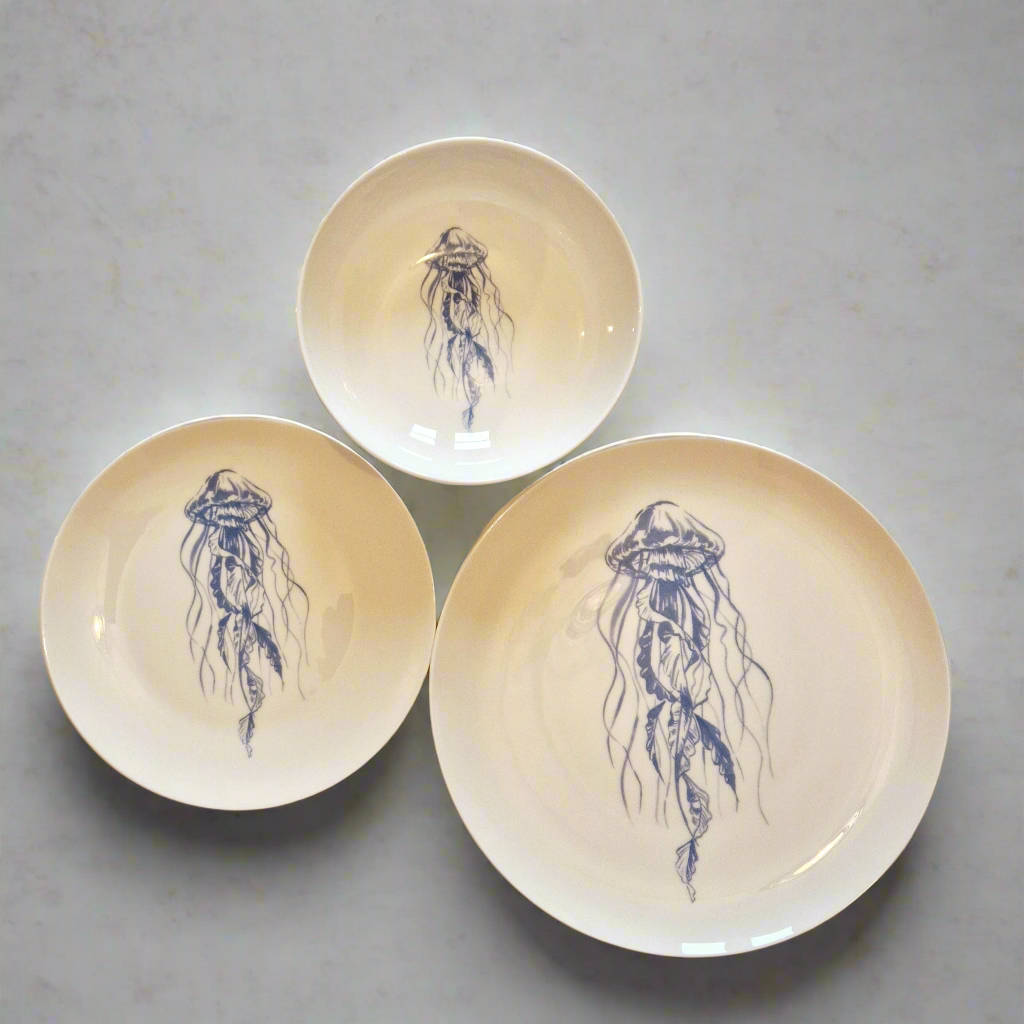 Fashioned out of durable, lightweight bone china and featuring hand-drawn fish, squid and octopus prints by Nevi Paints, these elegant dinnerware pieces will freshen any kitchen or dining space.