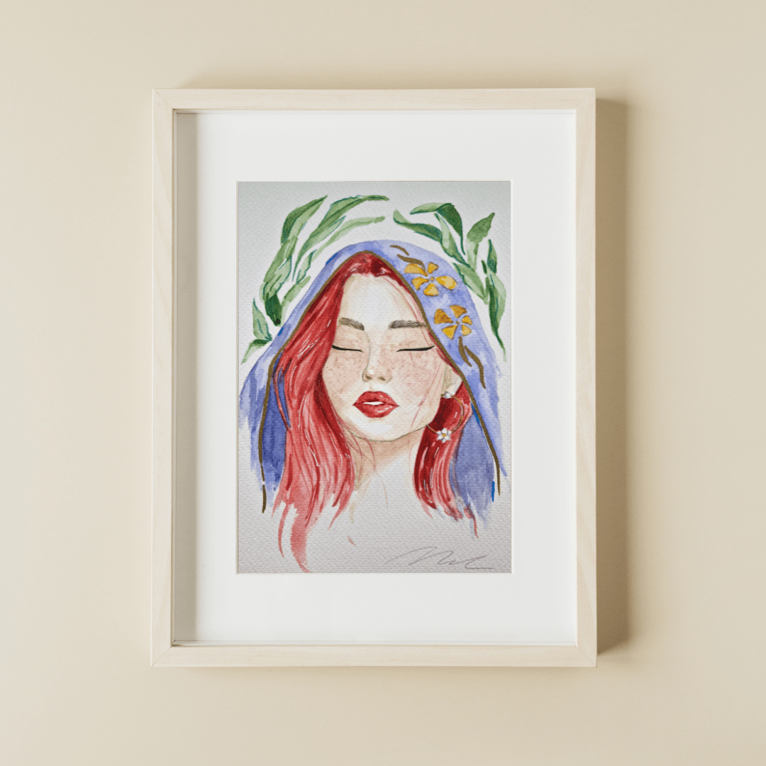 'Redhead Virgo', one of a kind original painting. Giclée prints available.